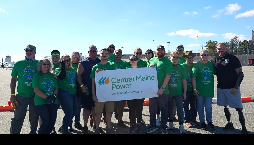 CMP employees volunteer at the Travis Mills Foundation’s Plane Pull supporting post-9/11 recalibrated veterans and their families, hosted at the Portland Jetport on Oct. 11, 2025